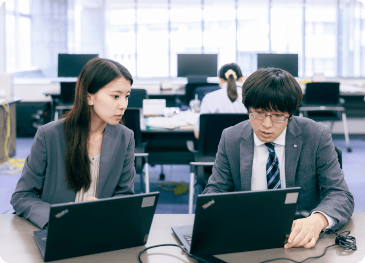 営業1課自治体案件では、入札仕様書を読み解き、当社の強みである『ワンストップサービス』を活かせるよう提案を練ります。特に技術的な壁にぶつかったら、すぐにデジタルソリューション課に相談ですね。