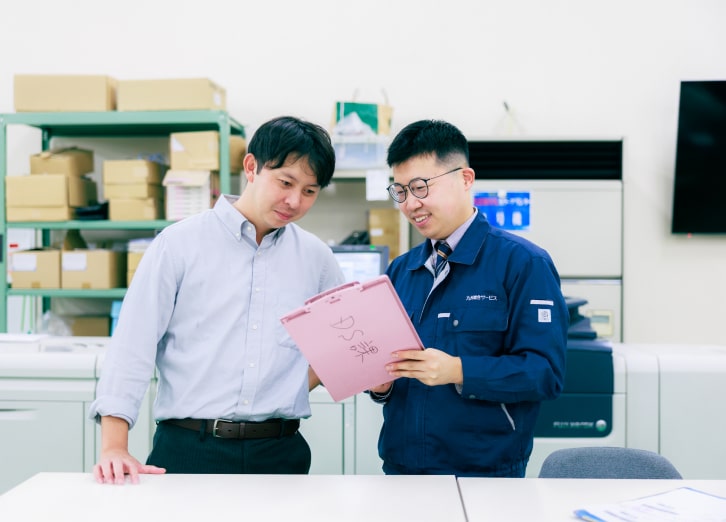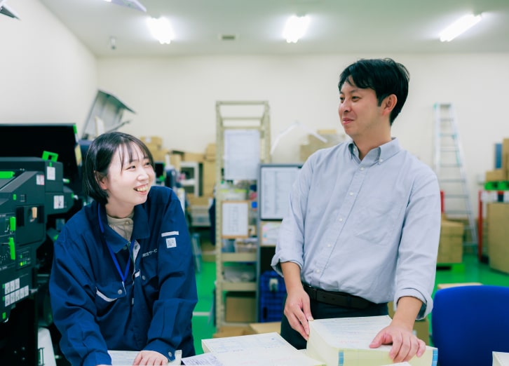 営業1課運用管理課で現場をしっかり回してくださるおかげで、お客さまに確実な納期を約束できます。また、現場からの改善提案も貴重な情報として、次の提案に活かしています。